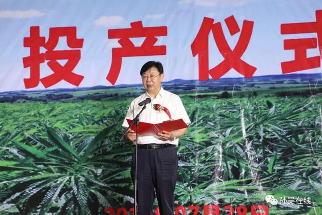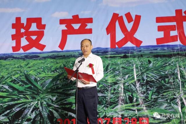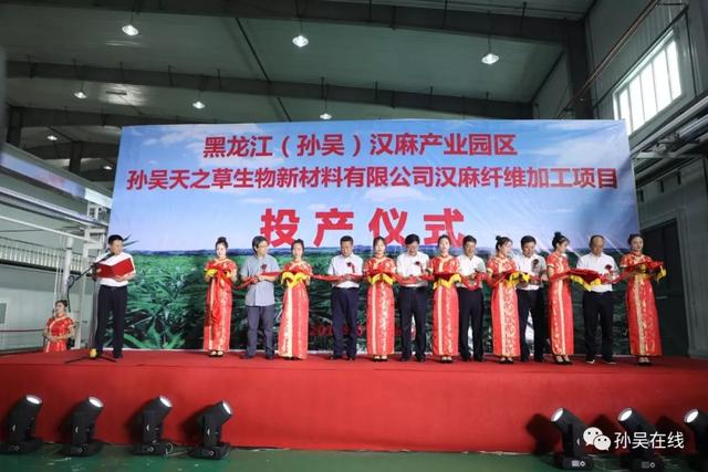 7月28日,孙吴天之草生物新材料有限公司汉麻纤维加工项目投产仪式在黑龙江(孙吴)汉麻产业园区隆重举行,投产仪式由孙吴天之草生物新材料有限公司主办,孙吴县工业示范基地服务中心协办。黑河市委书记秦恩亭,市委常委、市委秘书长张崇义,市政府副市长彭海涛及国内知名企业代表,cctv发现之旅等媒体出席投产仪式,县委书记代树奇,县委副书记、政府县长徐钢,县人大常委会副主任宋汉东,县政府副县长徐永新,县政协副主席孙太祥及中省市县直各有关单位和各乡镇负责同志、汉麻协会负责同志和农民代表参加投产仪式,投产仪式由县委副书记、政府县长徐钢主持。